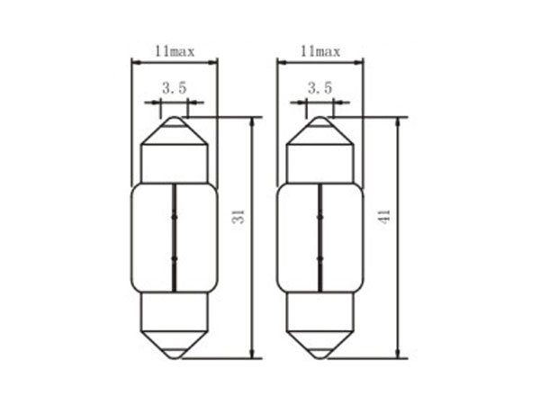 | 3501 | C5W | 12 | 5 | 45±20% | SV8.5 | E4 | T11x35 | 6418 | 12844 |